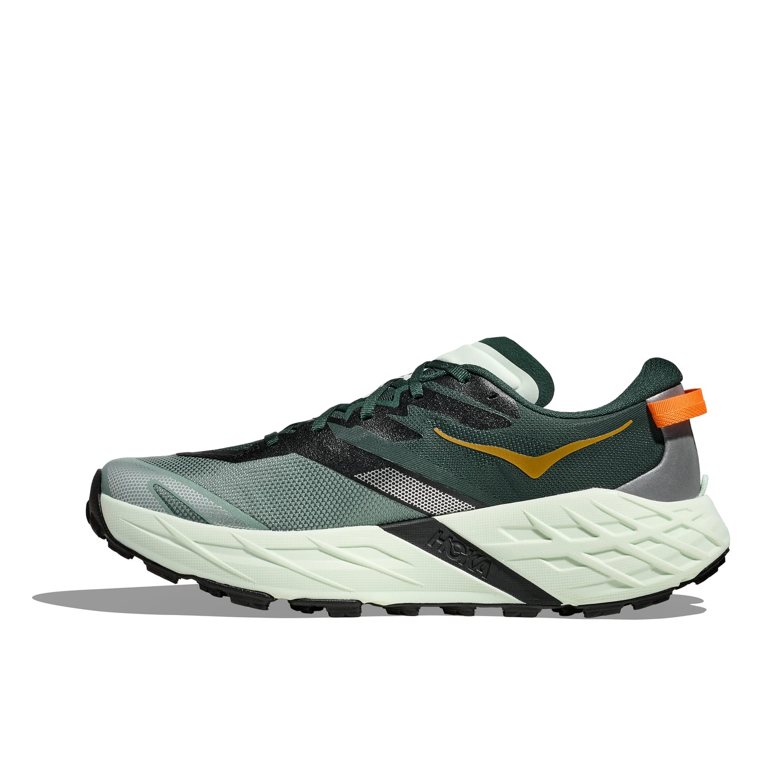 Gornji deo je izrađen od laganog, recikliranog RPET tkanog tekstila koji pruža savršen balans između prozračnosti i čvrstog držanja stopala. Patentirani 'dynamic vamp' u prednjem delu omogućava prirodno širenje stopala tokom dugih trka, dok integrisani sistem za kačenje gamašni osigurava da kamenčići i blato ostanu van patike. Bilo da se penjete uz strme kamenite uspone ili jurite niz klizave nizbrdice, Speedgoat 7 nudi beskompromisnu stabilnost i zaštitu.