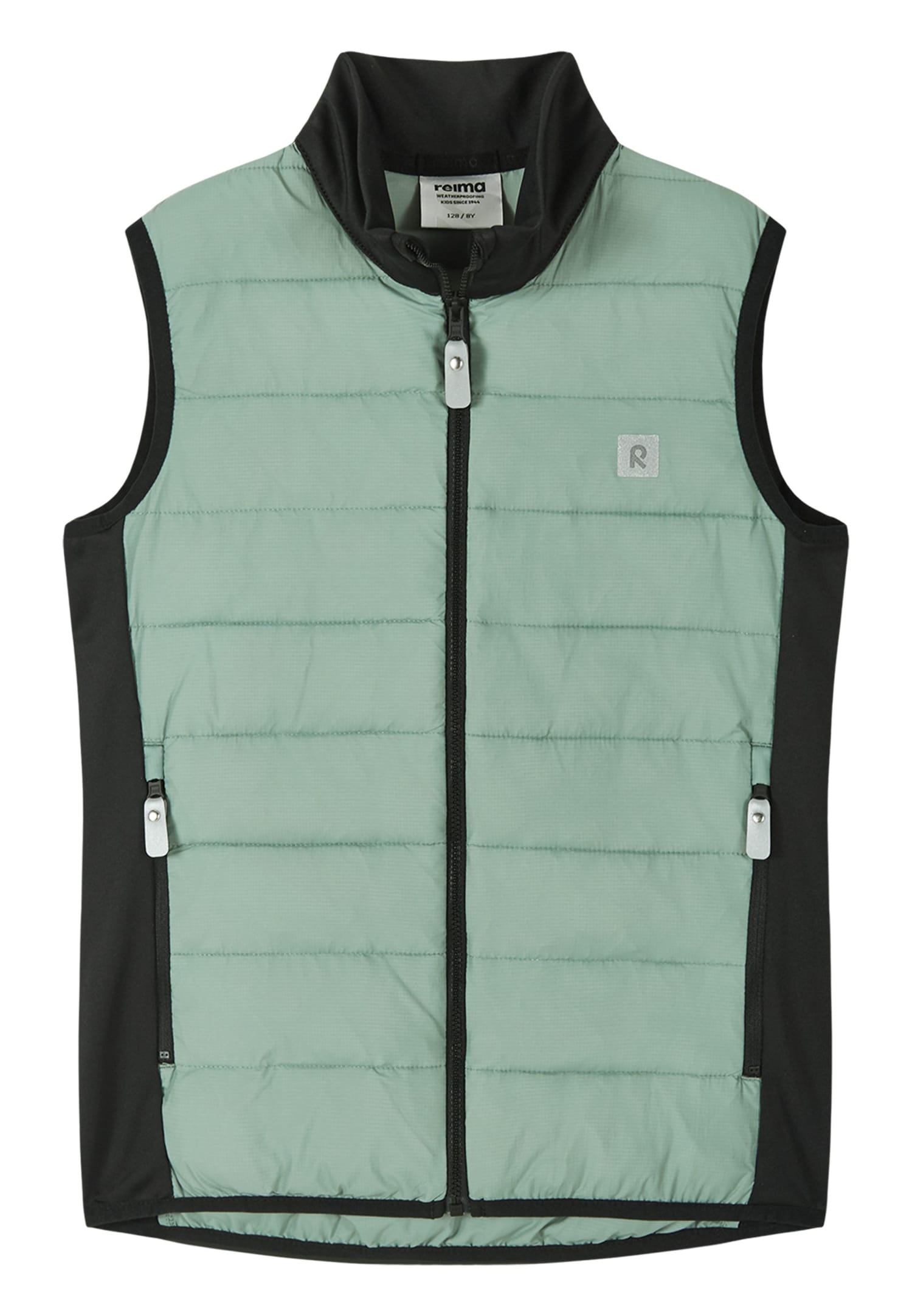 Lagani i svestrani Reima Tikkeri hibridni prsluk kombinuje vetroodbojni izolovani trup sa mekanim Seawool® flis panelima, pružajući idealnu toplotu i fleksibilnost za aktivnu decu.