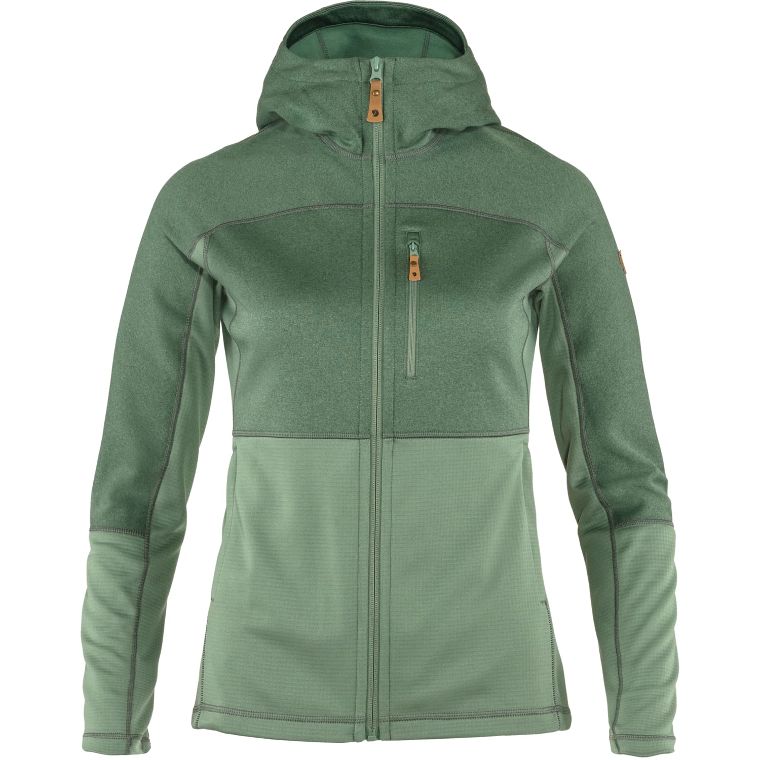 Lagan, praktičan džemper sa kapuljačom koji kombinuje dve različite flis tkanine kako bi zagrejao tamo gde je najpotrebnije i smanjio težinu i volumen. Kapuljača, ramena i grudi su napravljeni od ravno pletenog poliesterskog flisa (delimično recikliranog) sa mekom četkanom unutrašnjošću, dok su bočne strane, donji deo trupa i donji deo rukava od lakšeg flisa sa mrežastom strukturom i vrhunskom ventilacijom. Savršen kao brzosušeći srednji sloj koji odvodi vlagu za jednodnevne izlete ili hladne letnje večeri. Ženstven, dobro pristaje kroj i udobna kapuljača sa otvorom za rep. Jednosmerni rajsferšlus napred. Jedan džep na grudima i dva džepa za ruke, svi sa rajsferšlusima.