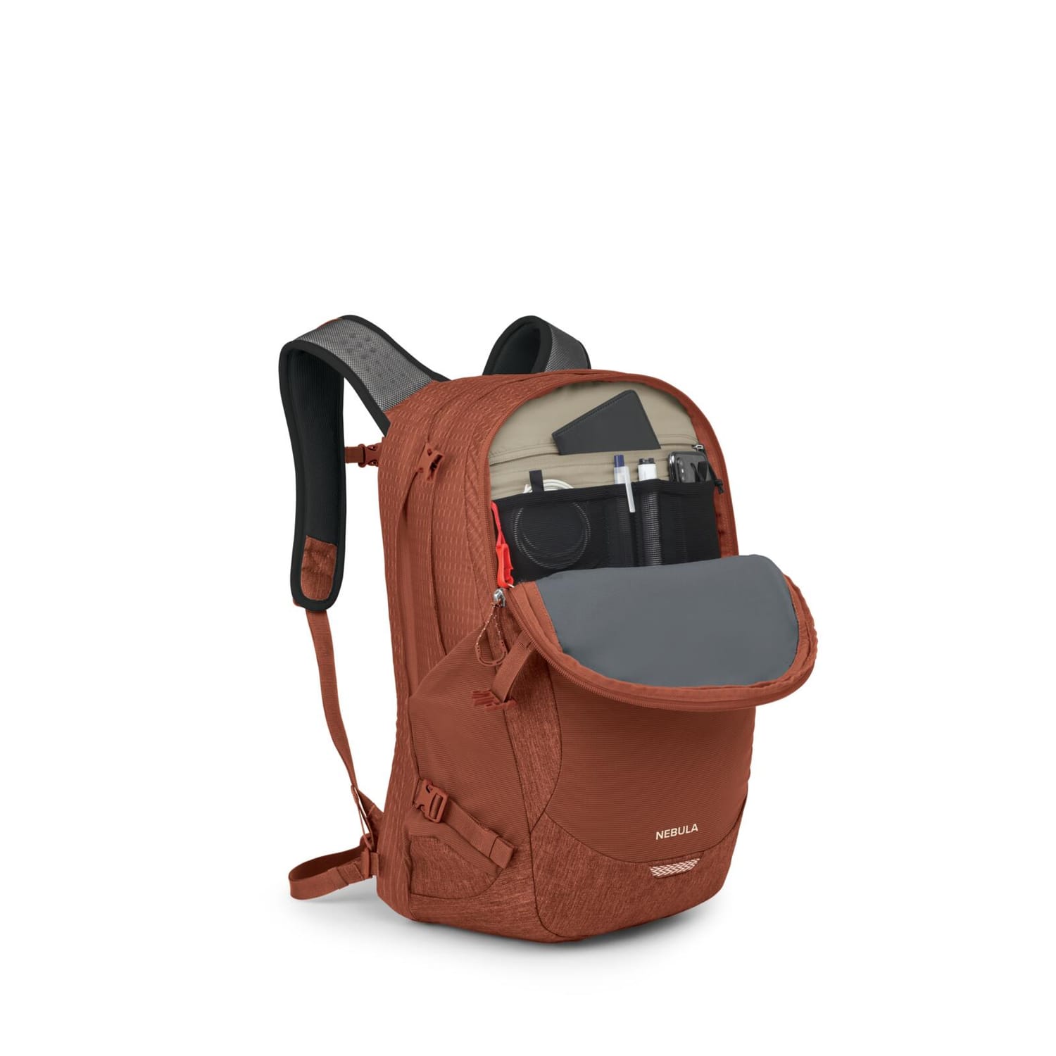 Osprey Nebula je prostran i izuzetno organizovan gradski ranac, dizajniran da prati vaš dinamičan životni tempo. Bilo da se krećete kroz gradsku gužvu, putujete na kratke vikend izlete ili idete na predavanja, Nebula nudi savršen balans između funkcionalnosti i udobnosti. Centralna karakteristika ovog modela je poseban, postavljen odeljak za laptop koji se otvara potpuno ravno (clamshell dizajn), što je usklađeno sa TSA standardima i značajno olakšava prolazak kroz aerodromske bezbednosne provere. Glavni odeljak je dovoljno prostran za dokumente, opremu za trening ili odeću, dok prednji organizacioni džep drži vaše sitnice poput ključeva, olovaka i kablova na dohvat ruke. Ranac je izrađen od izdržljivih, 100% recikliranih materijala sa bluesign® sertifikatom, naglašavajući Osprey-evu posvećenost očuvanju životne sredine.